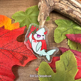 Make a splash with this playful acrylic pin featuring Byte, the shark, dressed in a silly devil costume.