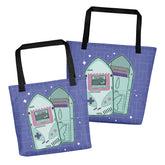 These totes are beautifully printed using dye-sublimation on fabric and sewn together with a long strap. Tote bags are perfect for carrying around items on a day-to-day basis. They're large enough to hold your groceries and other personal belongings. It's a wonderful alternative to plastic shopping bags. They're cute AND functional.