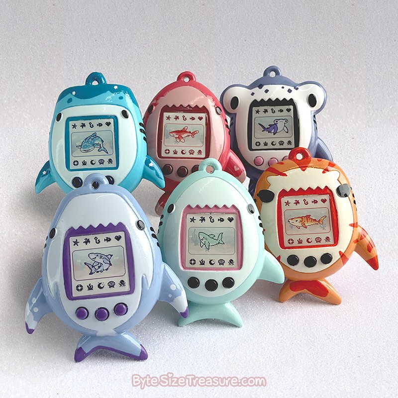 Sharkagotchis are HAND-MADE & HAND-PAINTED by my husband. A LOT of time, attention, and materials go into each and every one. Due to their handmade nature, no two are exactly the same.